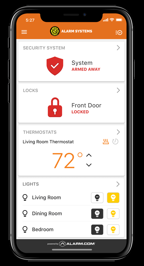 Manage your security system from anywhere using the Alarm.com mobile app.